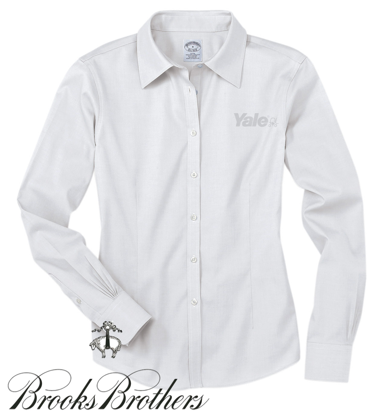 sku: Y363100% Supima pinpoint cotton made with pucker-free seam and specially treated to be virtually wrinkle-free. Fitted with feminine front and back darts, forward point collar, signature shirring at barrel cuffs and pearl buttons. Easy care machine wash and dry. Yale logo embroidered on left chest.